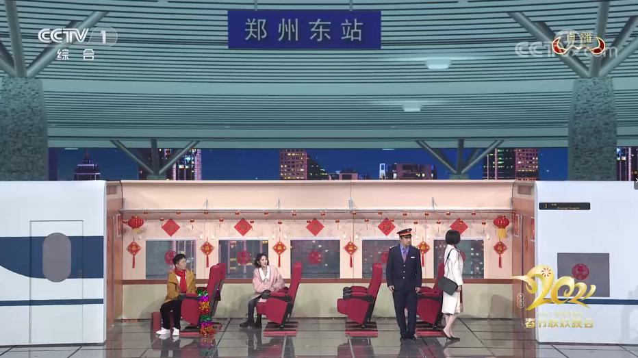 小品《开往春天的幸福》中,报站环节,多次提示“郑州东站”。